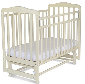 Pătuțul pentru copii „Mitenka” este realizat integral din mesteacăn solid. Peretele frontal este deosebit de fiabil și durabil datorită faptului că numai bara superioară este mobilă, astfel încât mama nu va trebui să se aplece peste bara pentru a avea grijă de copil sau de a-l lua în brațe. In functiile sale de confort includ, de asemenea si pozitia saltelei, care este reglabil în două poziții de înălțime. Patul are o structură de raft, care are un efect ortopedic asupra coloanei vertebrale și permite aerisirea saltelei.